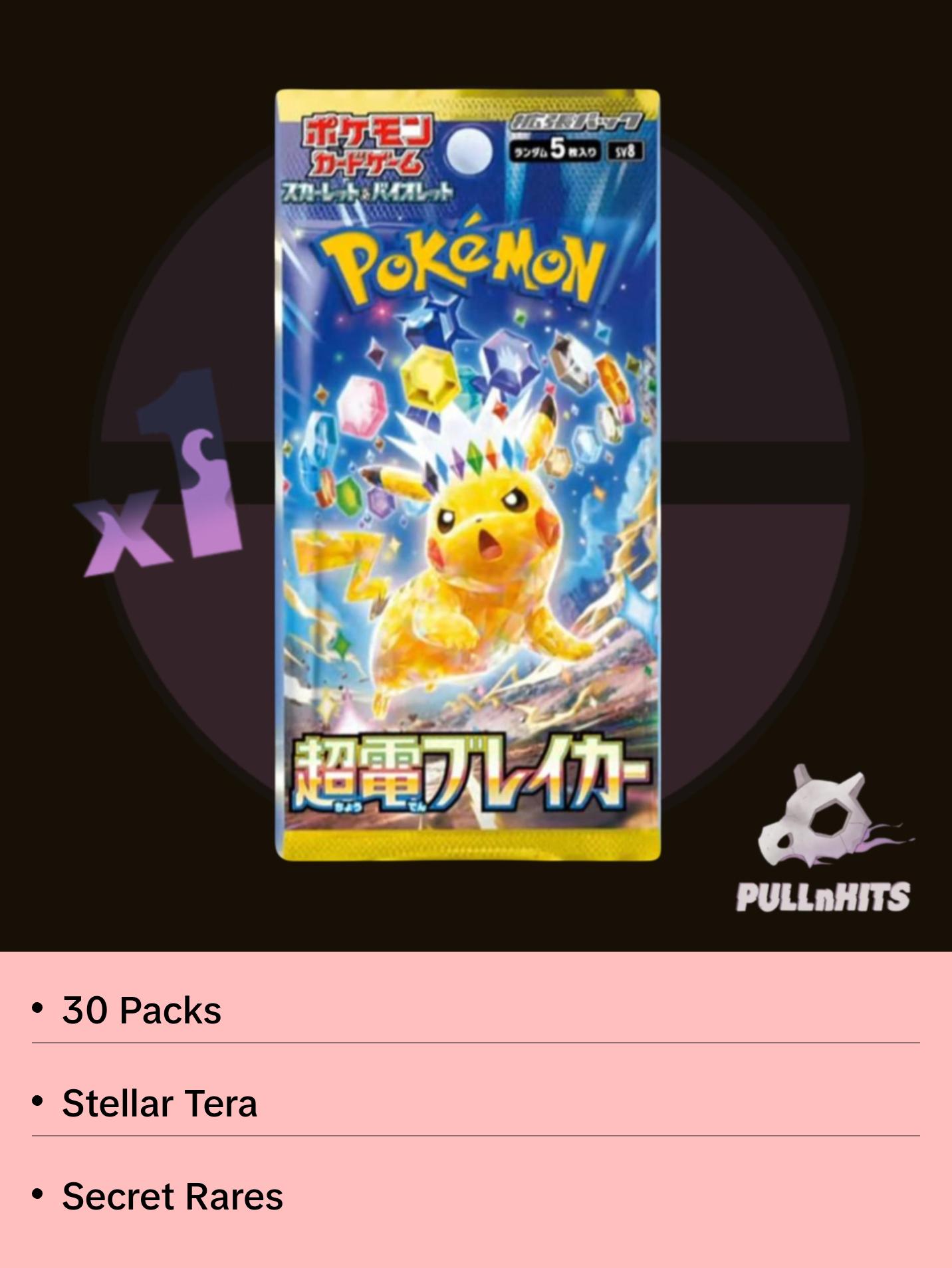 Releasing in Japan on October 18, 2024, Supercharged Breaker is the eighth Japanese main expansion set from the Pokémon TCG: Scarlet & Violet era. Combined with Paradise Dragona, it is the Japanese counterpart of the upcoming English set, Surging Sparks (11/8 release).