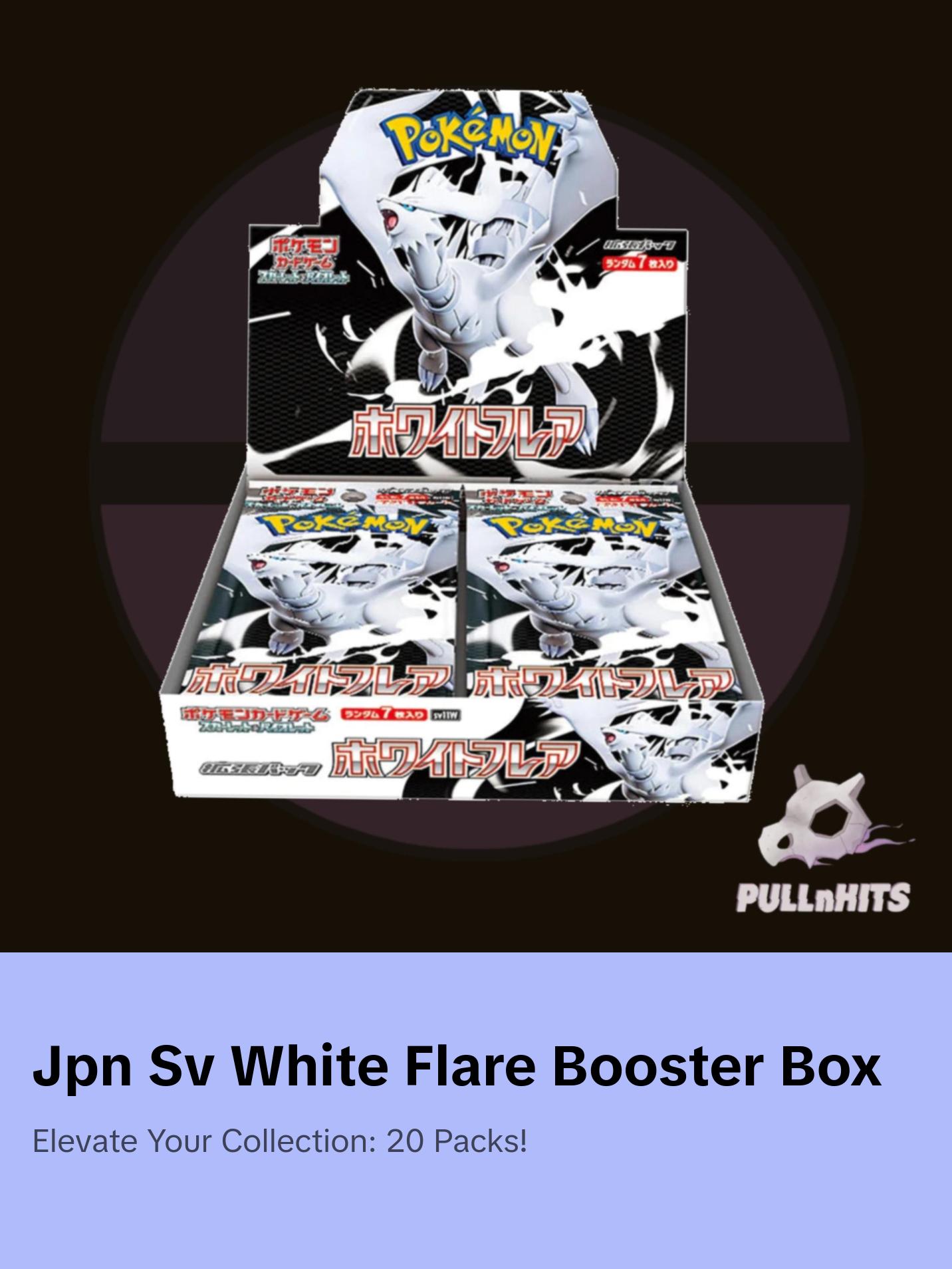 ✨ Dive into the world of Pokémon Trading Card Game with the JPN SV White Flare Booster Box! This box contains 20 packs, each filled with 7 cards. Perfect for collectors and enthusiasts, it's an essential addition to your collection.
