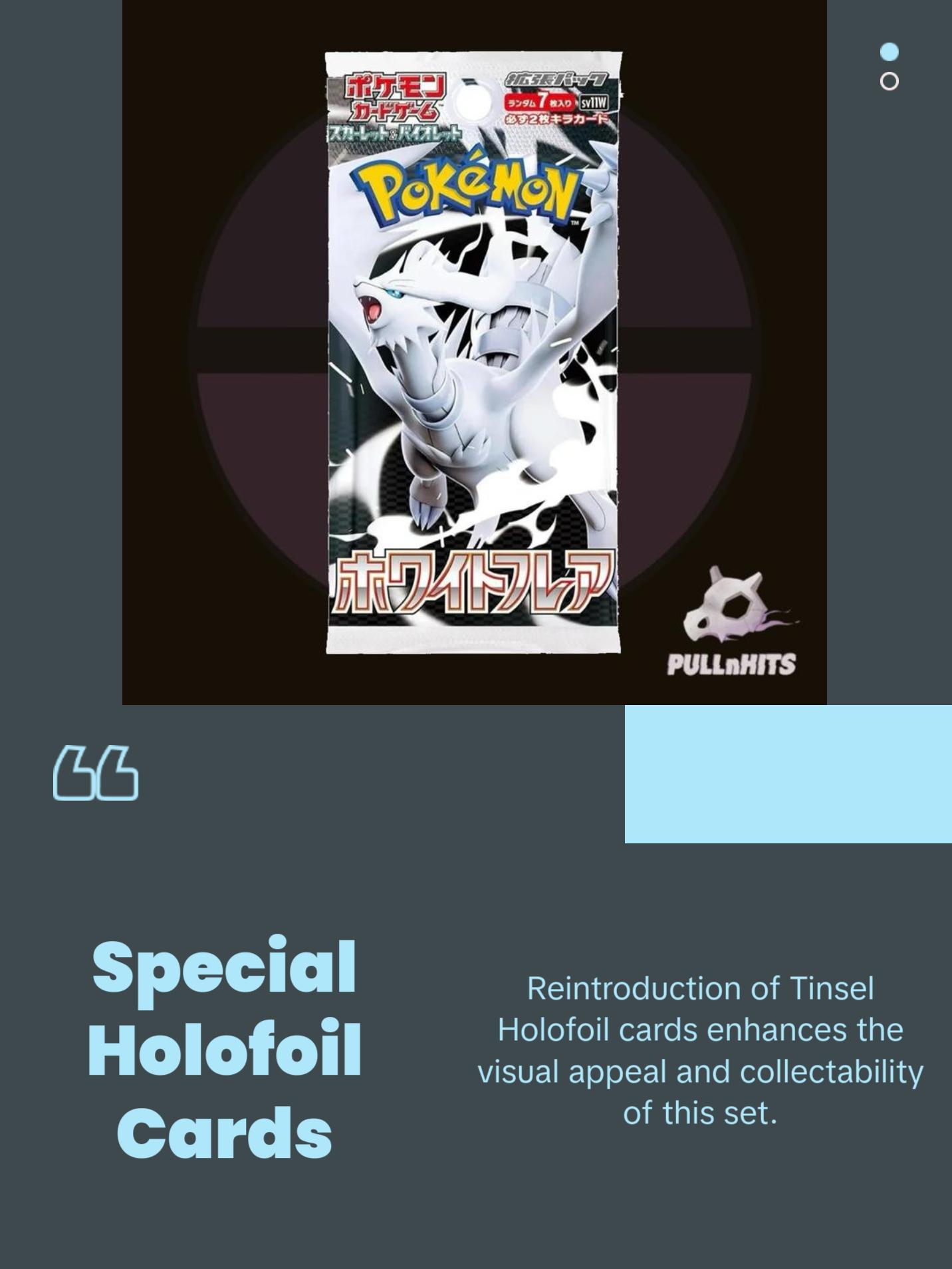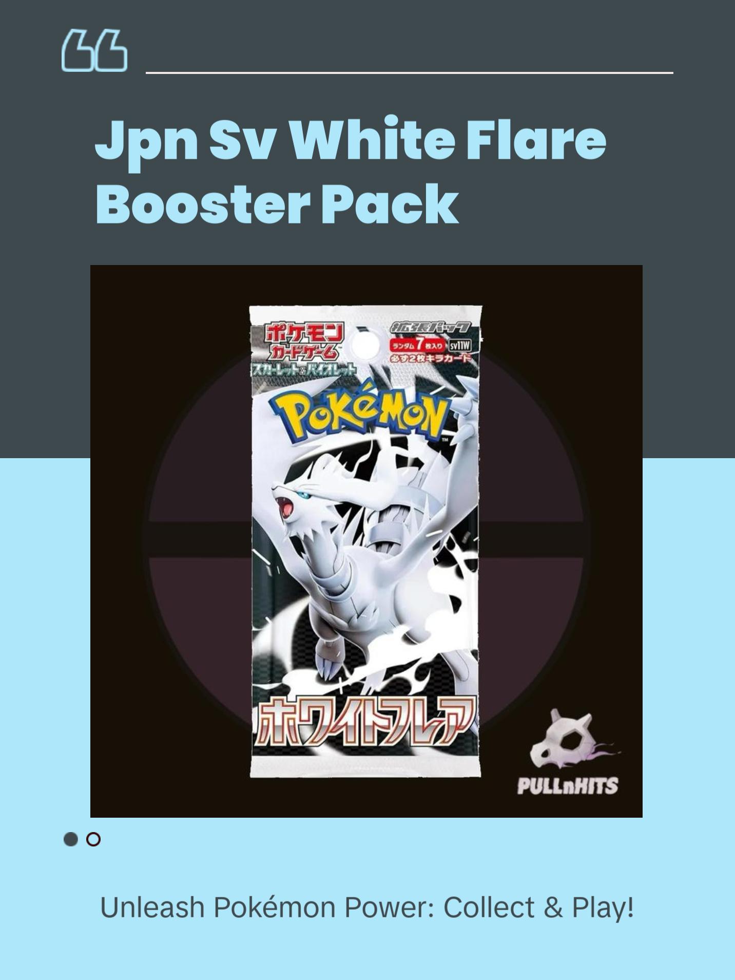 Dive into the Pokémon Trading Card Game with the JPN SV White Flare Booster Pack. This pack contains 7 cards, perfect for expanding your collection. The vibrant design features a striking white Pokémon, ready to enhance your gameplay. Ideal for collectors and players alike, this pack offers a chance to add new strategies and characters to your deck.
