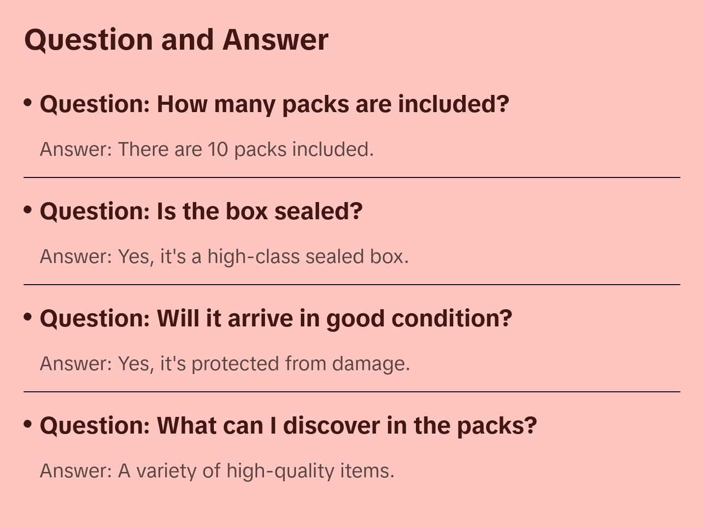 - 10 Packs of High-Quality Items: Each pack contains a diverse selection of items, allowing you to expand your collection and discover new surprises.