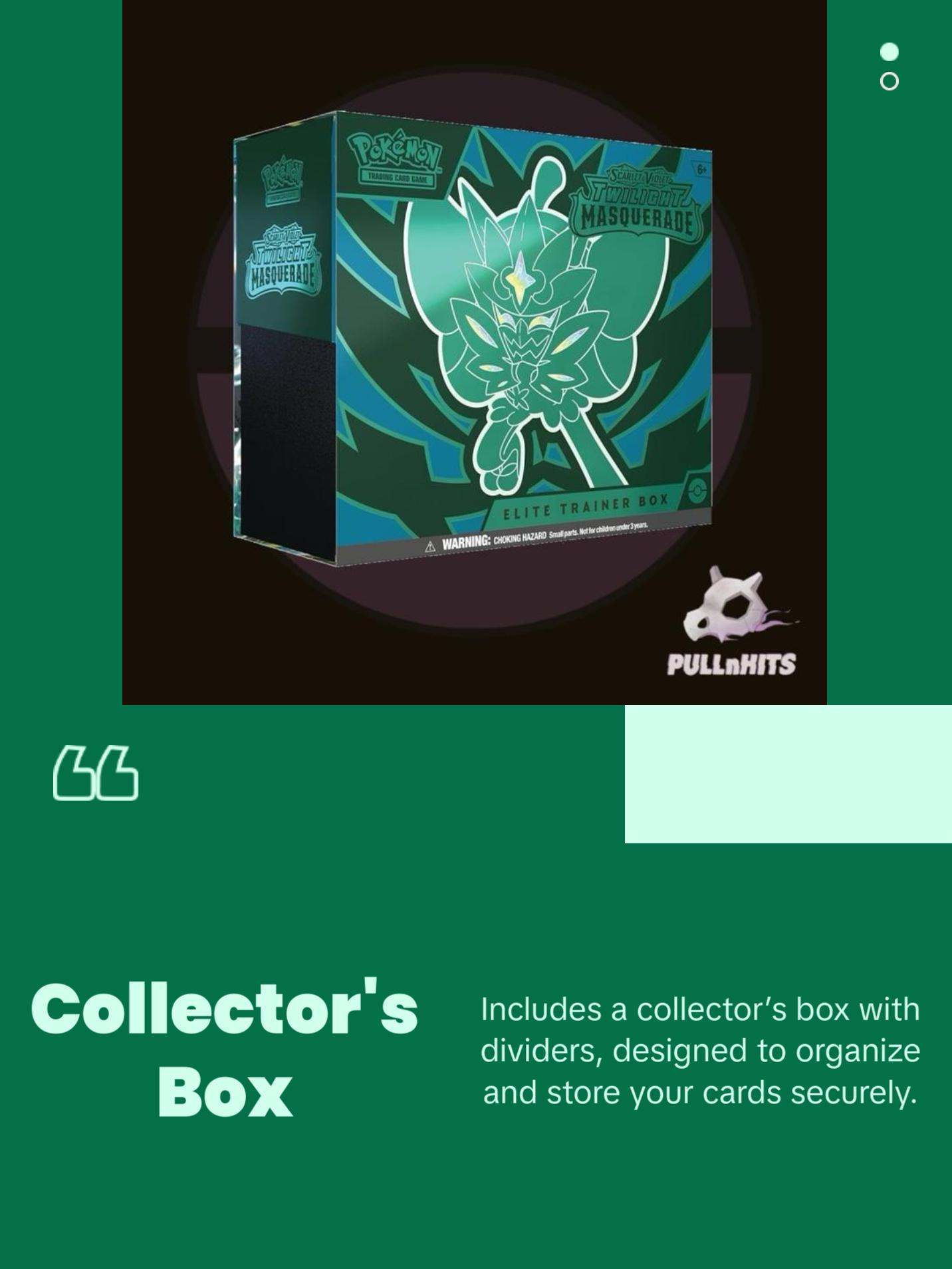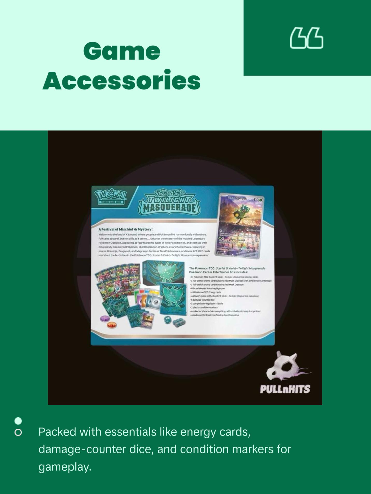 The Pokémon TCG: Scarlet & Violet—Twilight Masquerade Elite Trainer Box includes: