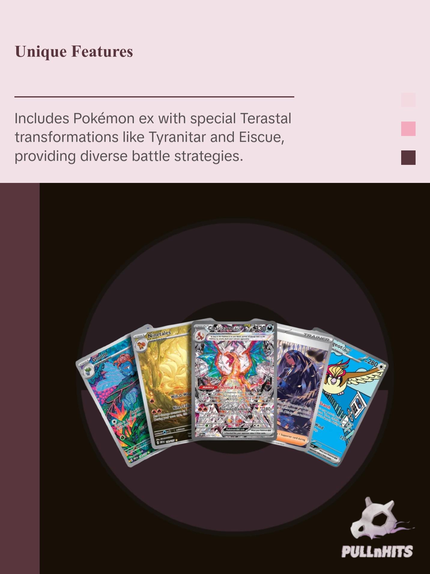 Join the battle with Pokémon ex that promise to change the course of Scarlet & Violet. Get ready for the red-hot embers and inferno of the Obsidian Flames!