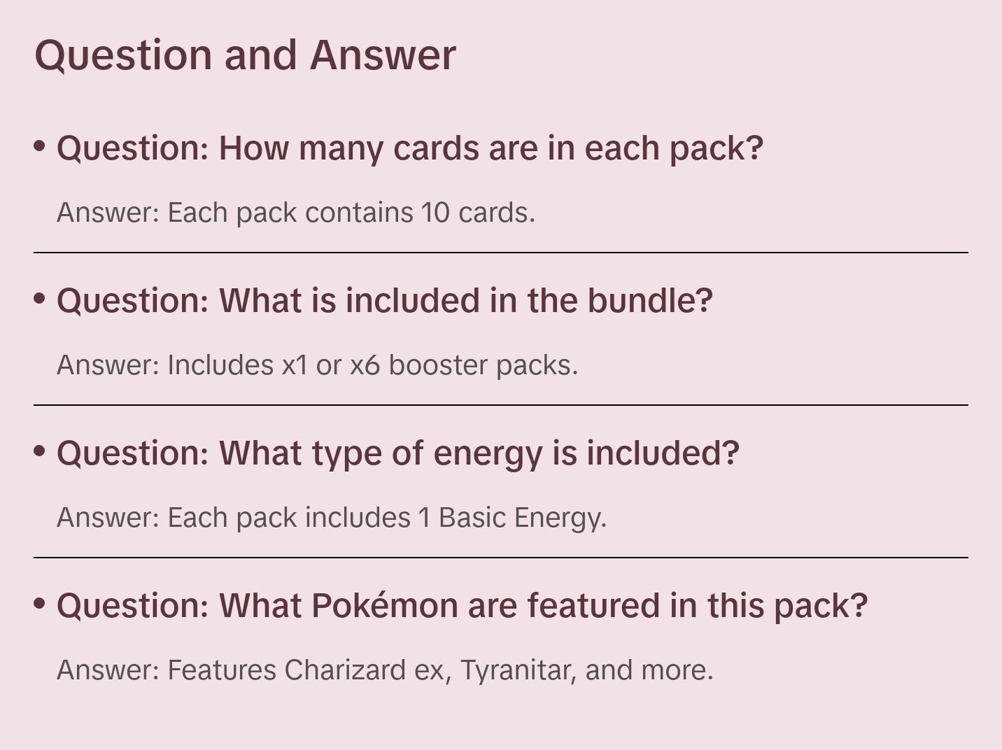- Cards vary by pack.