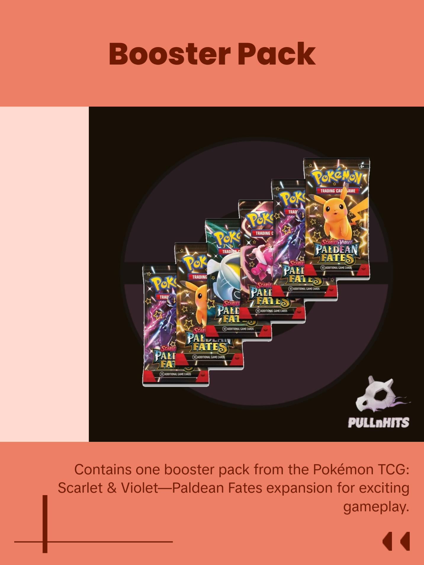 - Includes x1 booster packs from the Pokémon TCG: Scarlet & Violet—Paldean Fates expansion