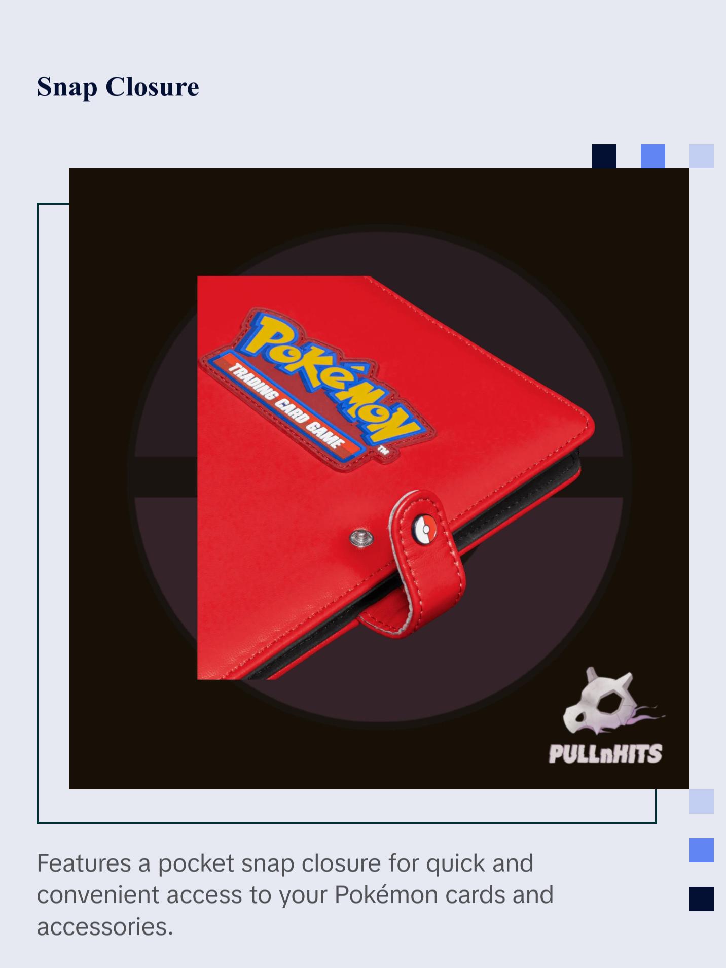 - Pocket Snap Closure: Offers easy access to your Pokémon cards and accessories, keeping everything organized and within reach.